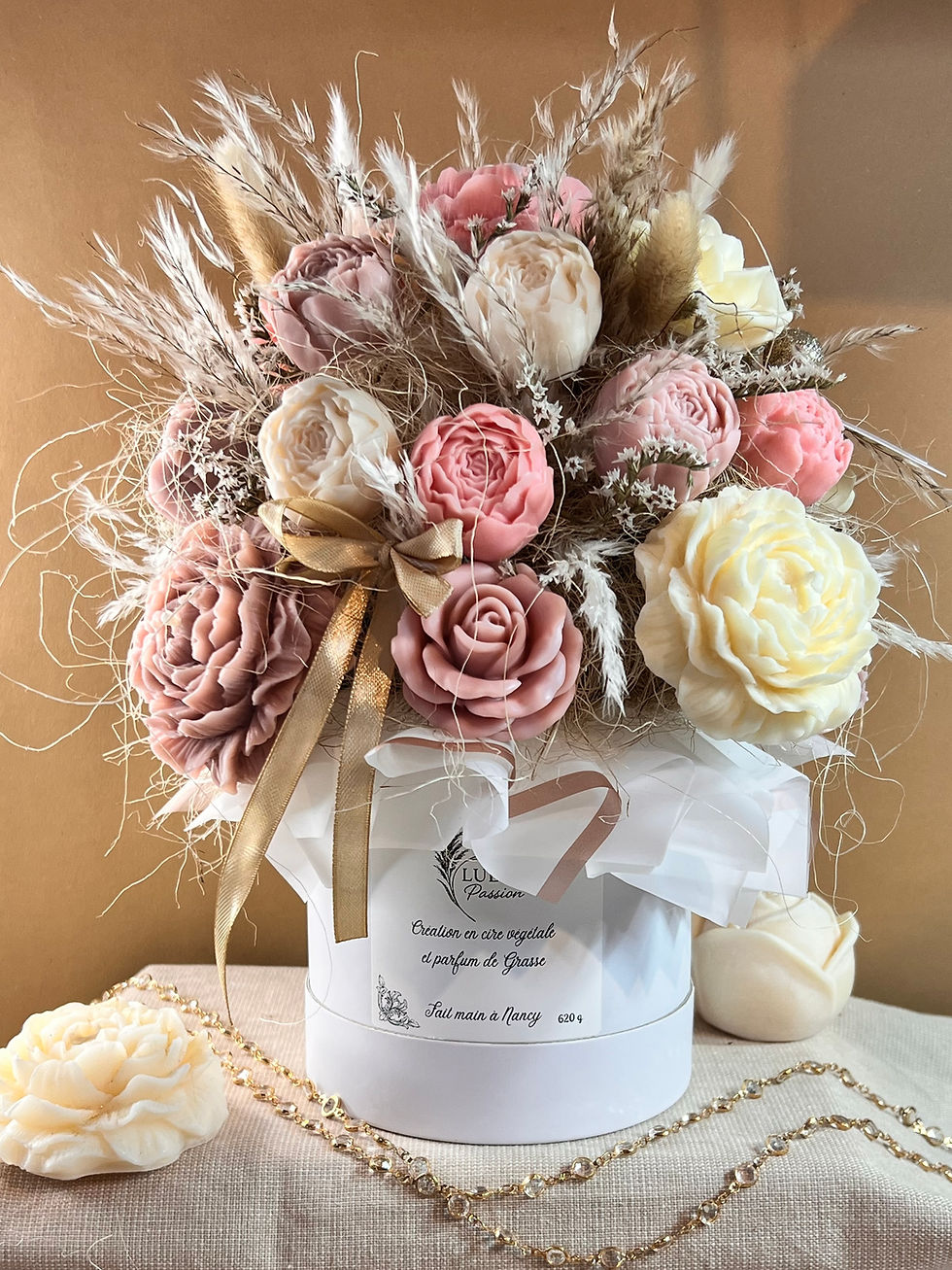 Bougies parfumées et bouquets de fleurs faits mains en cire végétale